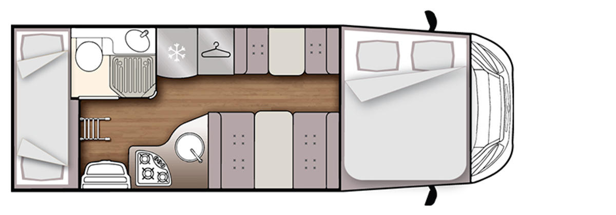 Das F4 Family Plus von DRM ist ein Wohnmobil mit ausreichend Platz und komfortabler Ausstattung für die gesamte Familie. Es ist eines der größten Wohnmobile der Flotte mit ausreihend Platz und Komfort für bis zu 3 Erwachsenen und 2 Kindern, die Schlafplätze im Alkovenbereich, in Etagenbetten und in den umgebauten Dinetten finden können.