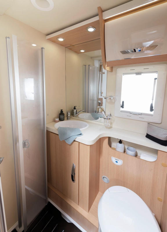 Dank des kleinen Bads mit Warmwasser sowie Gasstandheizung kann man völlig autonom reisen. Angenehm ist ebenfalls die Markise.