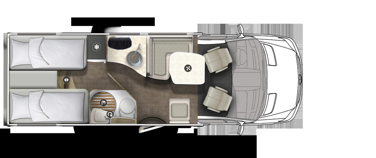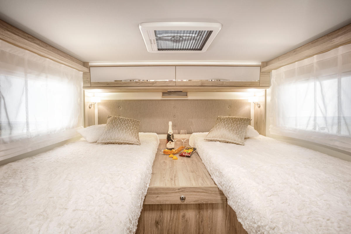 Das K4 Classic Star von DRM ist ein hochwertiges Wohnmobil mit komfortablen Einzelbetten und aufbaubarem Doppelbett für 3 Personen in Deutschland. Bei der Klasse handelt es sich um das Modell Euramobil Profila T 696 EB aufgebaut auf einen Mercedes Sprinter. Das Premium Wohnmobil fährt mit einem Dieselmotor bei einem Verbrauch von 12-14 L auf 100 km und hat eine Automatikschaltung.
