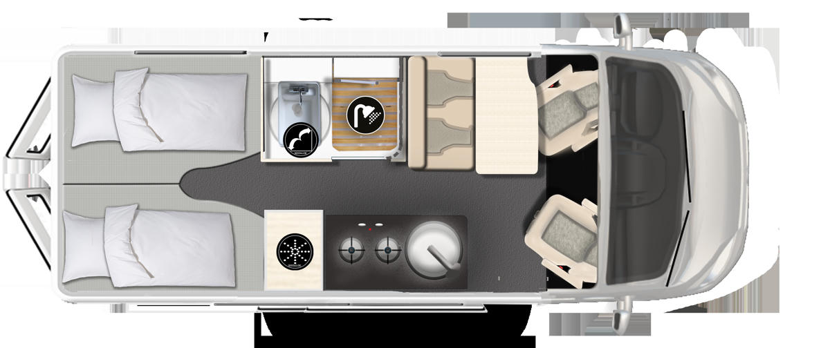Der V3 Compact Tourer von DRM - ein Kastenwagen mit zwei Einzelbetten im Heck, also perfekt für zwei Freunde.