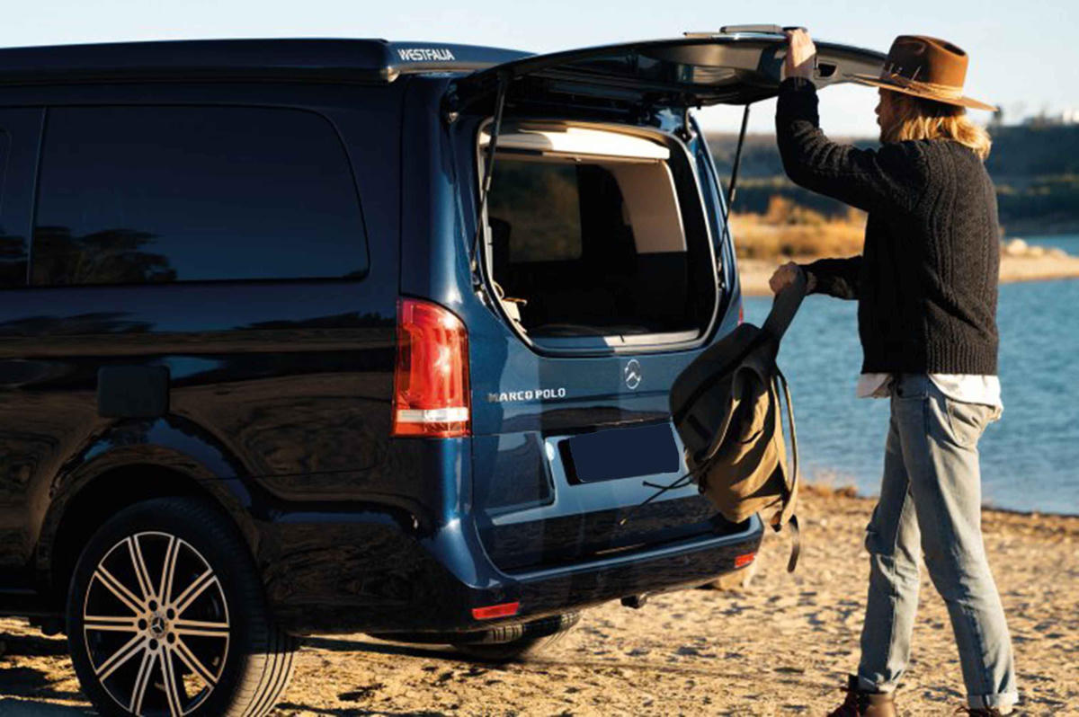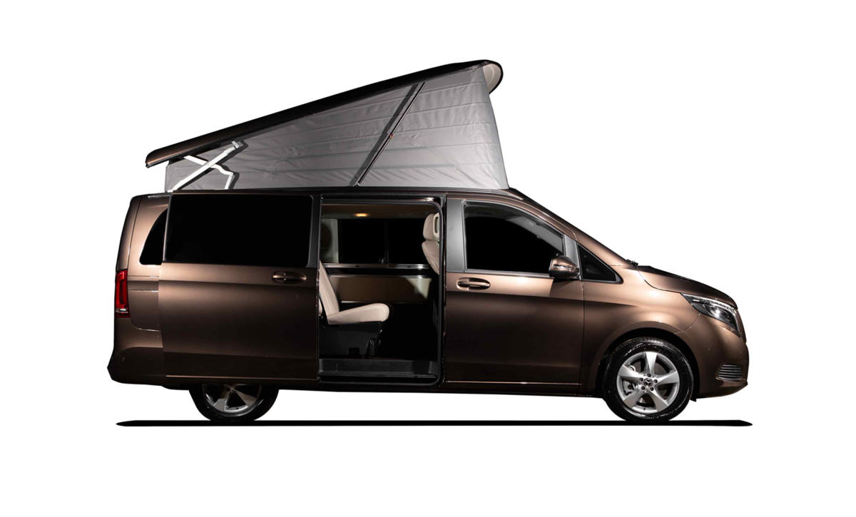 Bis zu vier Personen können im Marco Polo mit reisen. Durch das Faltdach entsteht der nötige Platz und Komfort.