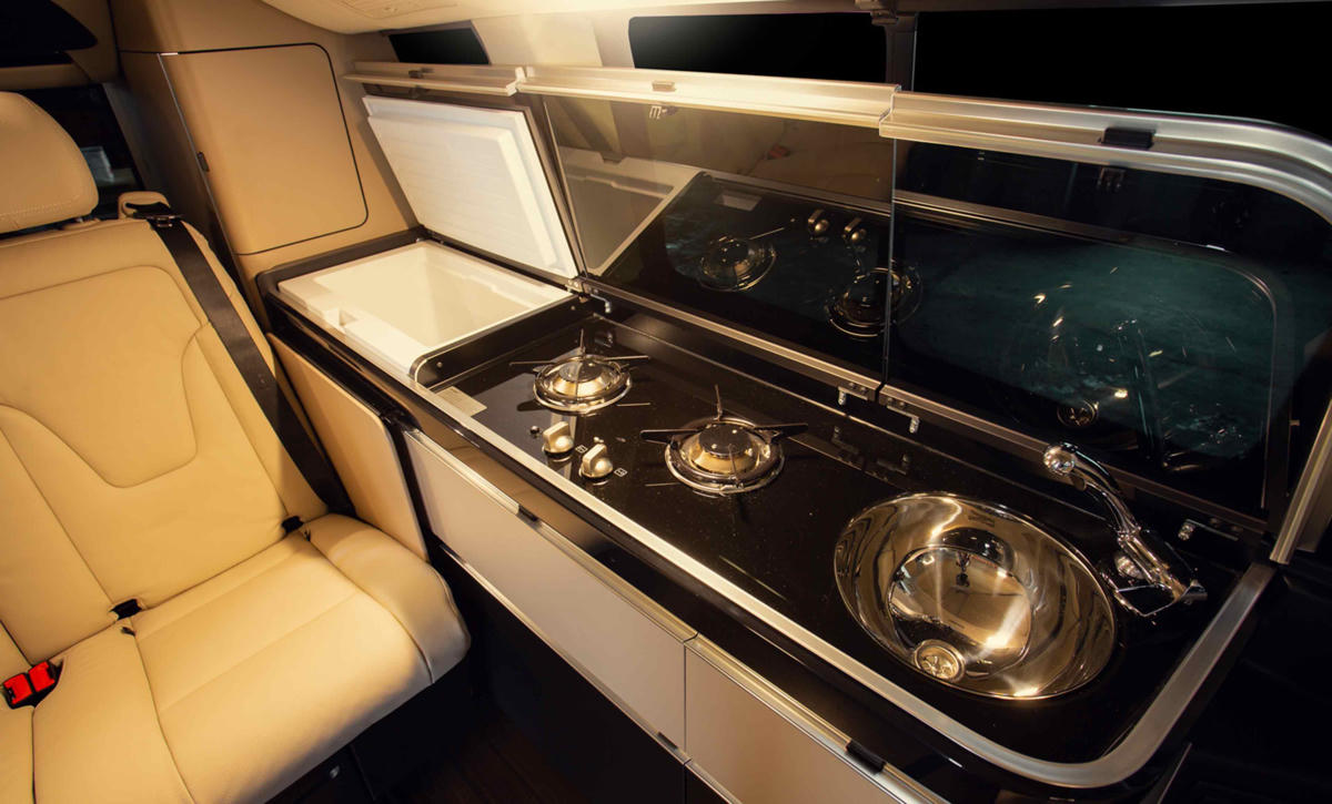 Der Marco Polo von Indie Campers ist ein kompakter und moderner Mercedes Vito und bietet Platz für bis zu vier Personen. Wer sich bei seinem Roadtrip in Europa für das Fahrzeug entscheidet bekommt ein hochwertigen Begleiter aus dem Jahr 2019 mit Automatik Gangschaltung und einem sparsamen Dieselmotor (8L/100km). Auch für Familien ist der Marco Polo durchaus eine kompakte und praktikable Lösung, da alle Vans einen 3 Punkt-Sicherheitsgurt an Vorder- und Rücksitzen haben. Der Innenraum ist sehr modern und mit einer Küchenzeile ausgestatte, welche einen 42L Kühlschrank, einen 2-flammigen Gasherd und eine Spüle bietet. Das Gas für den Gasherd könnt ihr vom Vormieter übernehmen. Für 29,90€ könnt ihr aber auch im Voraus eine Gasflasche erwerben. Damit habt ihr die Garantie für einen vollen Gastank. Zudem habt ihr einen Frischwassertank (42L). Im Fahrzeug gibt es vier USB Spots. Zwei der Spots befinden sich im Cockpit. Zudem gibt es einen Anschluss am oberen Bett und einen im Wohnbereich.