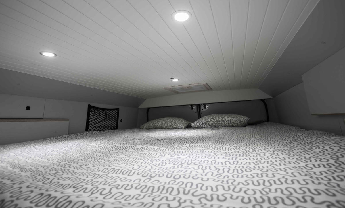 Die beiden Betten sind schnell aufgebaut und erinnern an ein Doppelstockbett. Das untere Bett ist 1,55m breit und 1,90m lang, während das obere Bett 1,45m breit und 1,90m lang ist. An der Rückseite des Campers befindet sich zudem eine Außendusche. Der Sporty ist ein kompakter Begleiter für einen Europa Roadtrip und bietet das typische Kastenwagenfeeling. Der Ausbau ist einfach gehalten, bietet jedoch genau die Eigenschaften, die man für einen gelungenen Europaroadtrip braucht. Ab 18 Jahren kann das Fahrzeug gemietet werden.