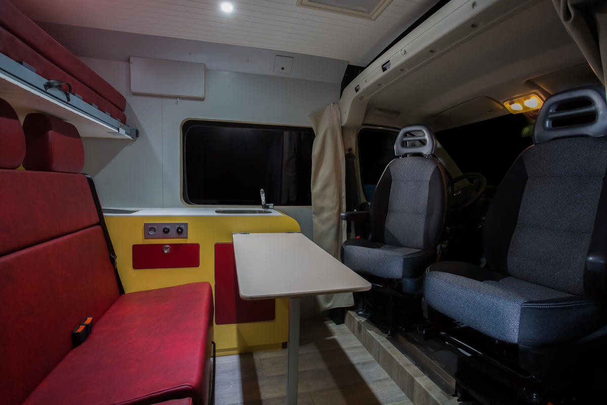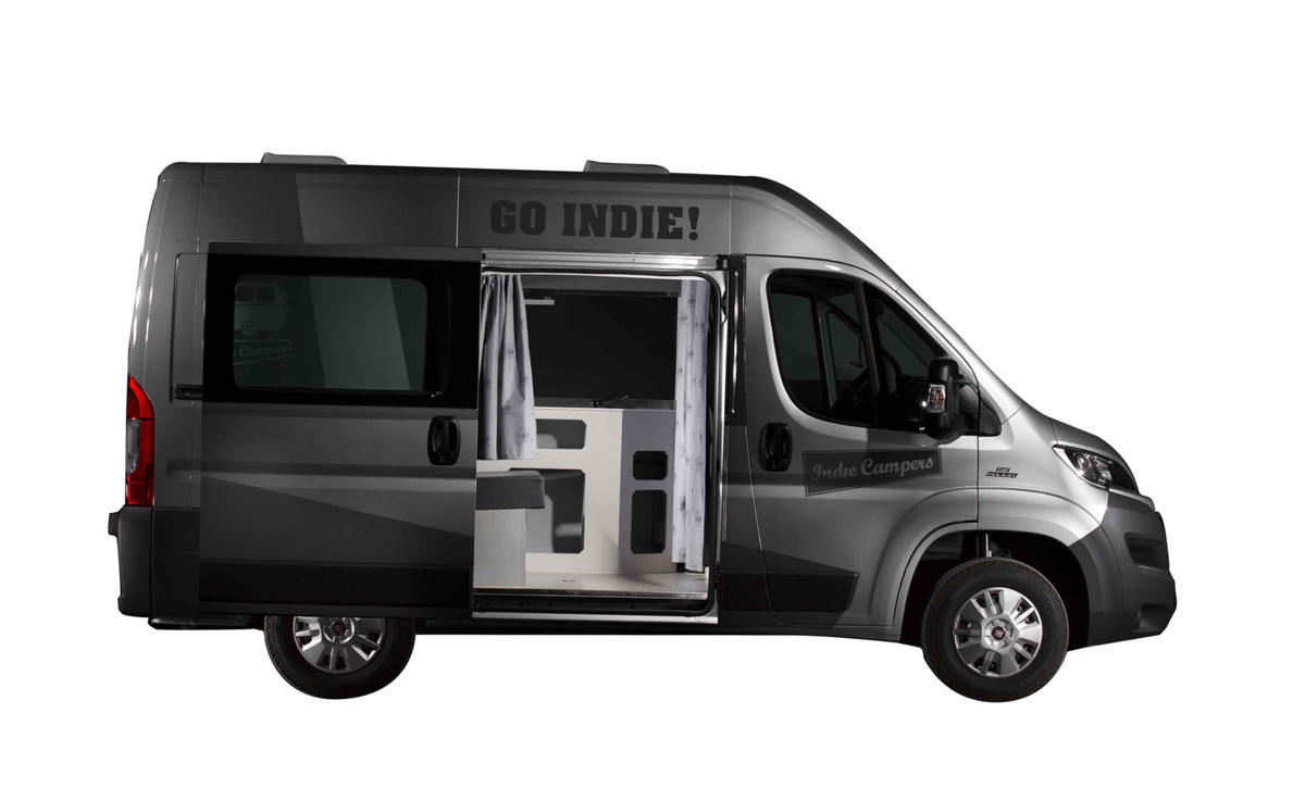 Der Sporty von Indie Campers ist ein sportlicher Fiat Ducato L1H2 Kastenwagen. Bis zu vier Personen können im Fahrzeug sitzen und schlafen. Dadurch ist das Fahrzeug besonders bei kleinen Gruppen und Familien beliebt. Der Camper hat eine Automatikgangschaltung und einen sparsamen Verbrauch von ca. 7l/100km. Die Sitze in der Fahrerkabine sind drehbar (nicht garantiert), dadurch kann der Innenraum effizienter genutzt werden und ihr könnt gemeinsam am mobilen Esstisch sitzen. Die Küchenzeile besteht aus einer Spüle mit einem 50L Frischwassertank und einer elektrischen Kühlbox. Zudem bekommt ihr noch einen ein-flammigen Gaskochen mit dazu.
