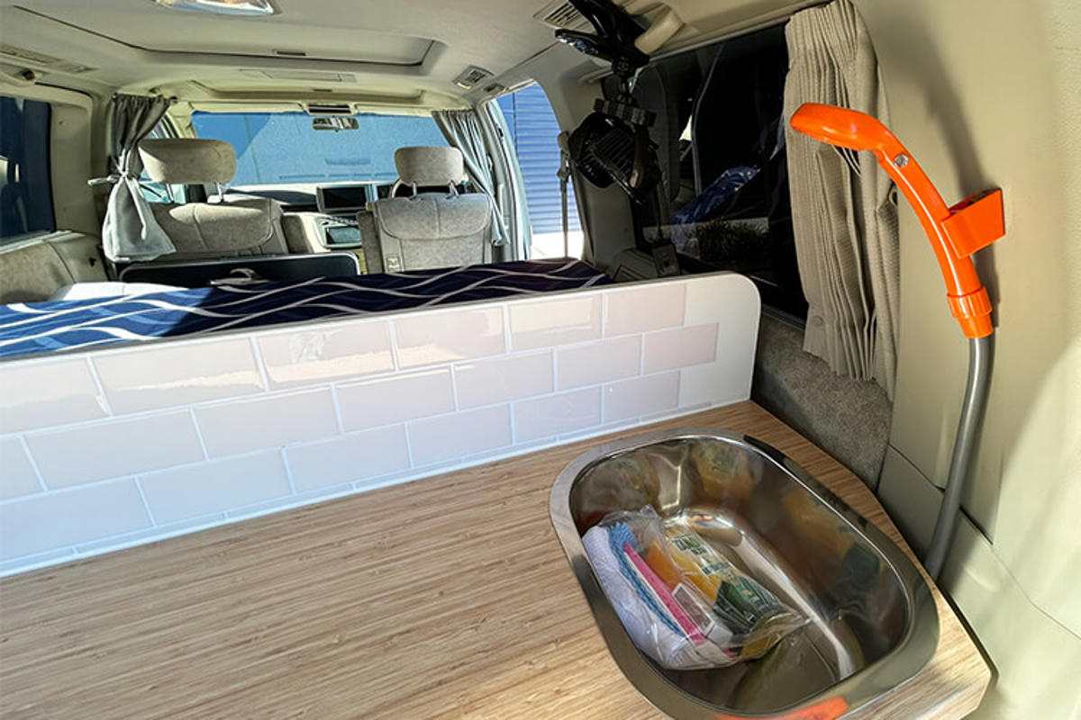 Im Heck wartet eine praktische Küchenzeile mit 40-L-Kühlschrank, Gasherd sowie eine Spüle und ausziehbarem Duschkopf – ideal für schnelles Kochen unterwegs. Ein zweiter 15-L-Kühlschrank in der Fahrerkabine sorgt dafür, dass Snacks und Drinks immer griffbereit sind. Mit an Bord befindet sich ein 25L Frischwassertank.