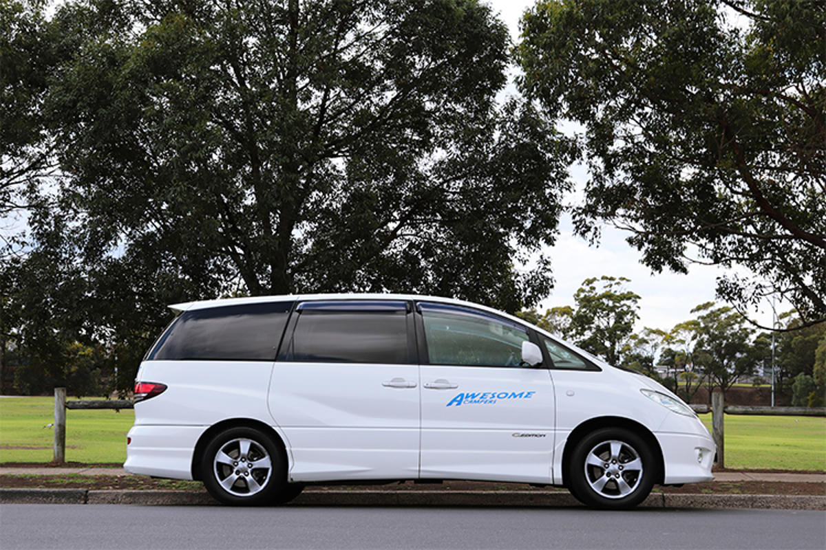 Der Compact Camper von Awesome Campers ist ein etwas kleinerer Van basierend auf einem Toyota Estima oder ähnlich und die ideale Wahl für Paare, die Australien günstig und flexibel bereisen möchten.