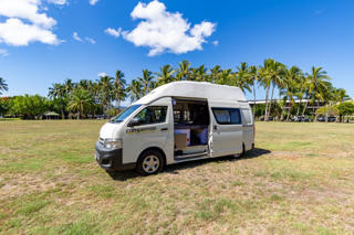 Camperman Australia ist ein familiengeführter Vermieter in Australien, der sich auf die Vermietung von Hochdach-Campern auf Toyota Hiace-Basis spezialisiert hat. Der Anbieter betreibt sein Hauptdepot in Cairns, wo alle Fahrzeuge regelmäßig kontrolliert und ausgebaut werden. Die Kommunikation läuft direkt über ein kleines, erfahrenes Team – bei Problemen wird nach unserer Erfahrung schnell, fair und unkompliziert reagiert.