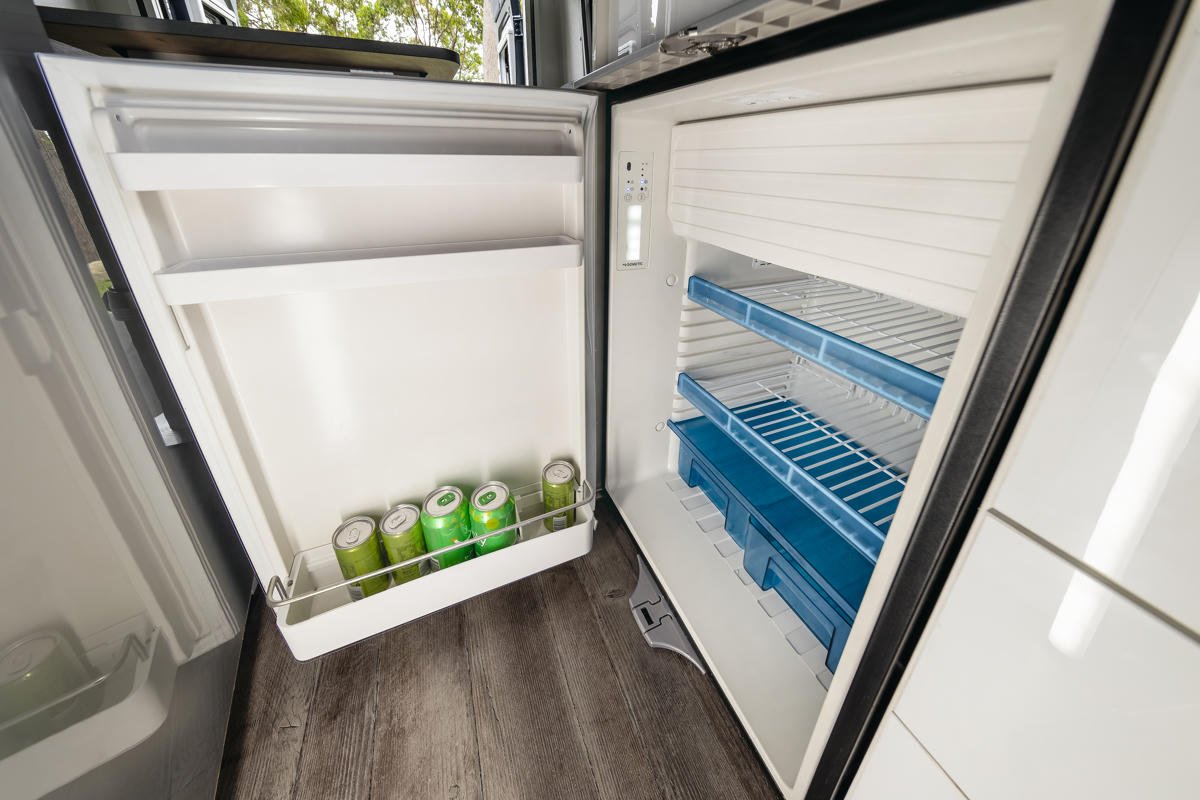 Die Ausstattung der Küche umfasst eine Spüle, Mikrowelle, 2-flammigem Gasherd und 90L Kühlschrank, einen Wohnbereich mit TV und Stereoanlage, eine Klimaanlage sowie überall verteilte USB-Ladeanschlüsse. Zusätzliche Extras wie ein Campingtisch und -stühle oder einen Heizlüfter können gegen eine Gebühr hinzugefügt werden oder sind in der Stress Free Plus Versicherung inbegriffen. Ein großer Vorteil für Kastenwägen: Seit 2025 bieten alle Modelle eine Außen-Markise für Sonnenschutz. Bettwäsche, Kissen, Handtücher und Bettdecken sind ebenfalls im Lieferumfang enthalten.