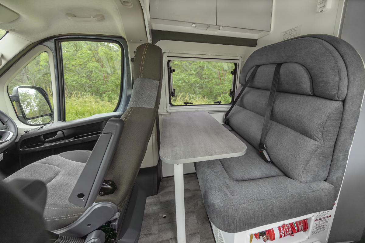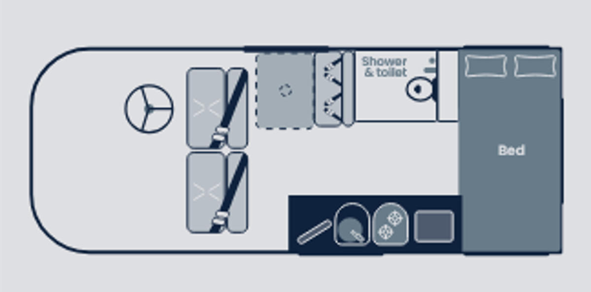 Die gut ausgestattete und schön gestaltete Küche und das Badezimmer mit WC und Dusche (self contained) bieten sehr moderne Annehmlichkeiten für die Reise. Der Polaris 2 zeichnet sich durch ein tolles Design aus und bietet mit seinen großen Fenstern einen schönen Blick auf die Natur während der Fahrt. Für eine erholsame Nachtruhe könnt Ihr die Fensterblenden komplett schließen, um Privatsphäre und Dunkelheit (deutlich besser als mit Gardinen!) zu gewährleisten.