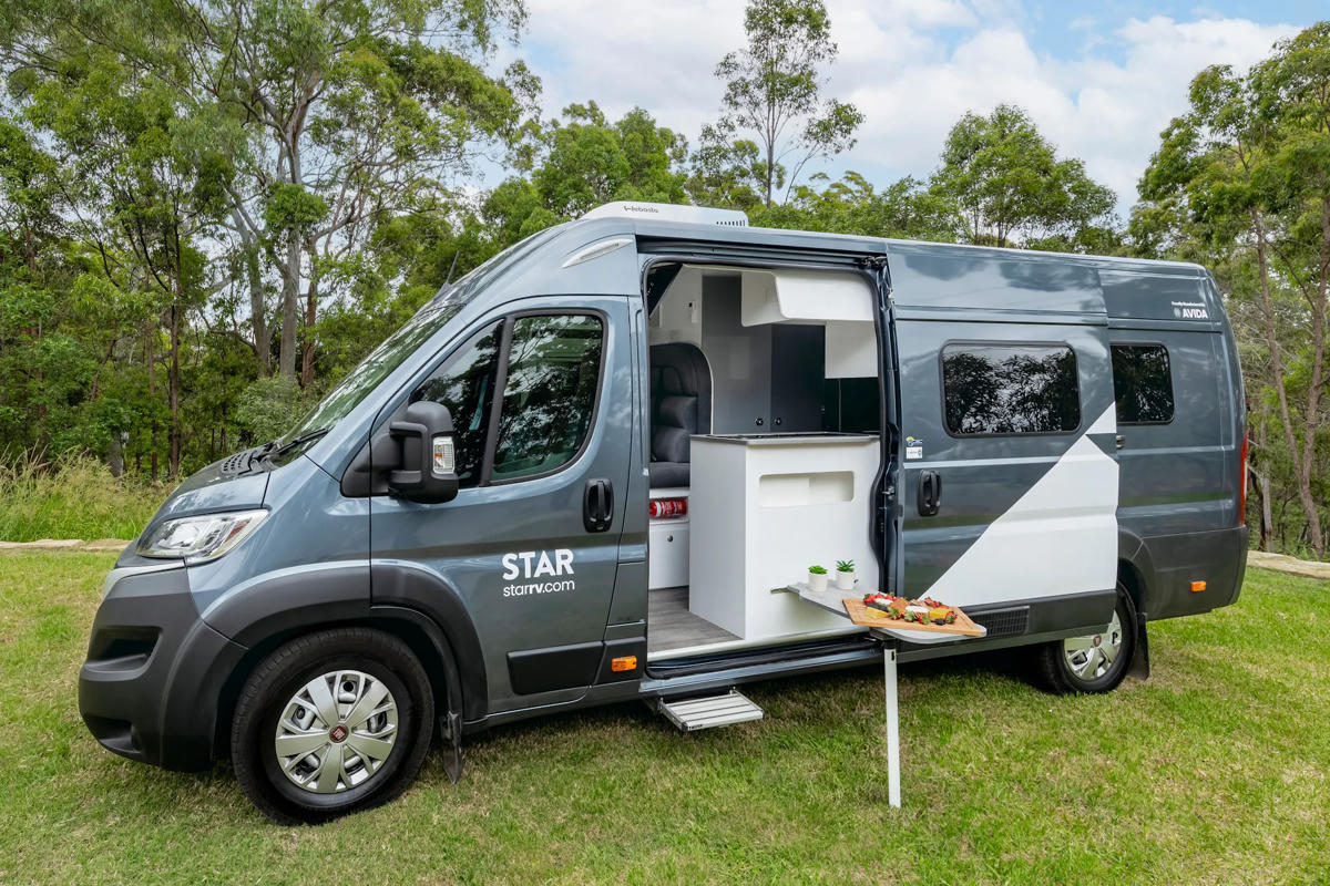 Der Polaris 2 von Star RV ist ein moderner Camper mit zwei verschiedenen Modellen für Paare oder Eltern mit zwei Kindern in Australien.