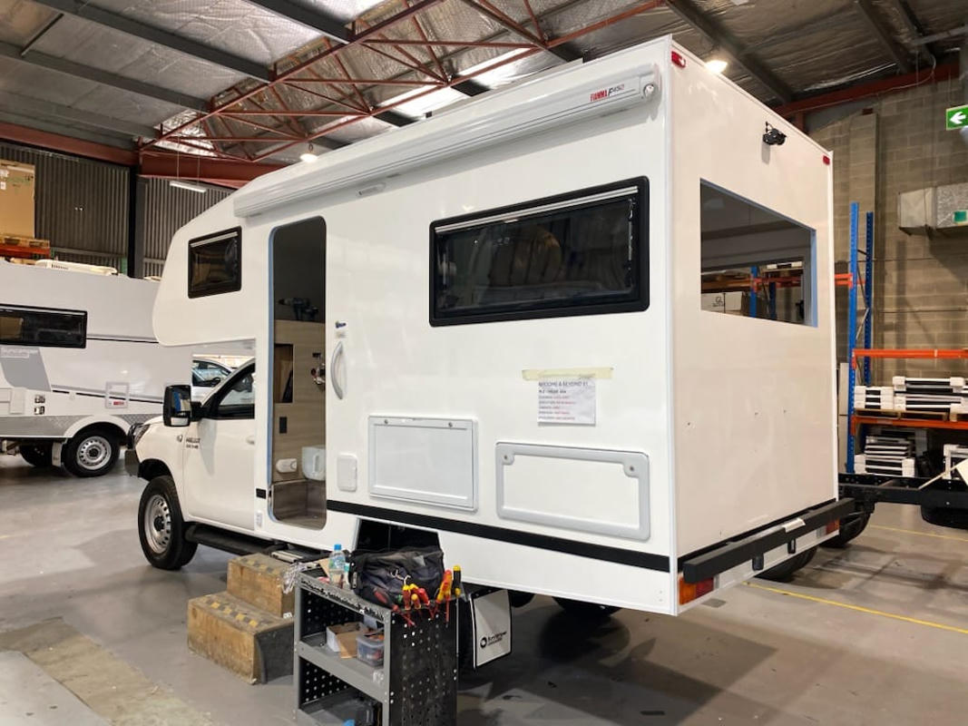 Hinweis: Die gezeigten Bilder sind beispielhaft für das tatsächlich verfügbare Fahrzeug zur Miete. Dieses wird am Anfang 2026 nach Perth geliefert und dann dort weiter ausgebaut und verbessert. Eine 3 Meter Markise wird außen angebracht werden auf der linken Seite, wo auch der Eingang zur Kabine ist. Buchungen sind ab dem 1. Mai 2026 möglich. Mindestmietdauer: 28 Tage. Wenn der Ausbau weiterhin gut vorangeht, ist es denkbar, dass März bis Mai Buchungen für Perth - Perth oder Perth nach Broome möglich werden - schreibt uns an.