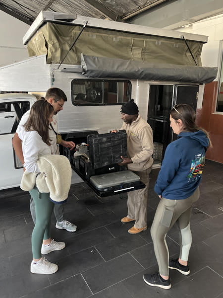 deckte den gesamten 4WD Camper und alle Ausrüstungsgegenstände ab. Die Dauer der Einweisung hing vom Fahrzeug und unseren Nachfragen ab. So dauerte die Einweisung in den Group S ca. 45min und in den Group VKK ca. 50 min. Der Group L von Max ist eines der am umfangreichsten ausgestatteten Modelle, weshalb die Einweisung etwas über eine Stunde in Anspruch nahm.