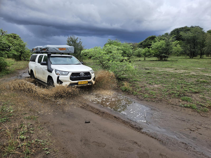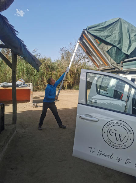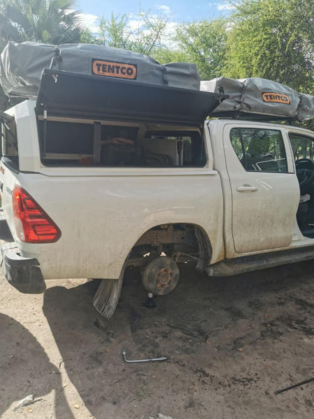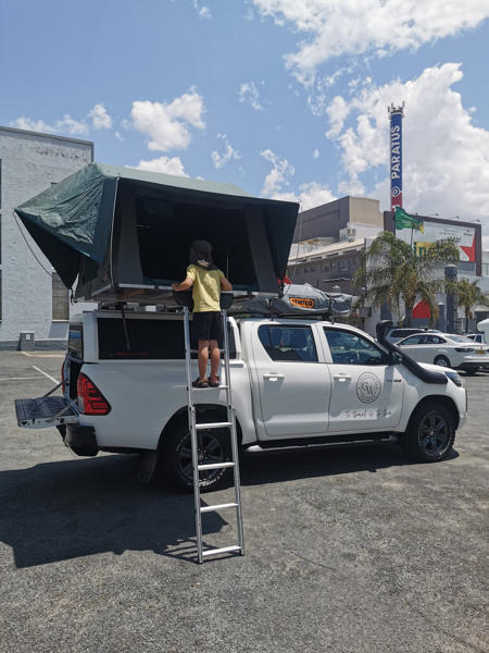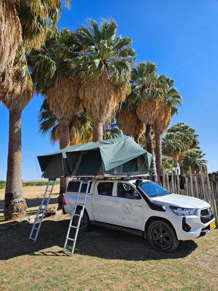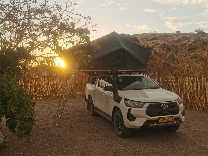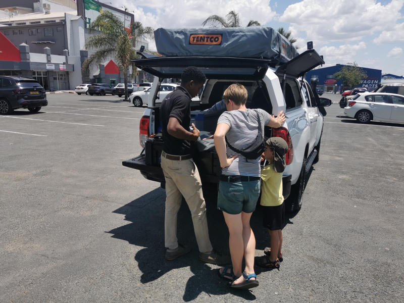 Das Fahrzeug haben wir über die Camperoase gebucht und fühlten uns dort super beraten. Unser Vermieter vor Ort war Gracious Whisp, der uns vom Hostel in Windhoek abholte und zum Depot fuhr. Hier wurden wir sehr freundlich und herzlich empfangen und unser Auto stand schon bereit: ein Toyota Hilux 2.4L mit zwei Softshell Dachzelten.