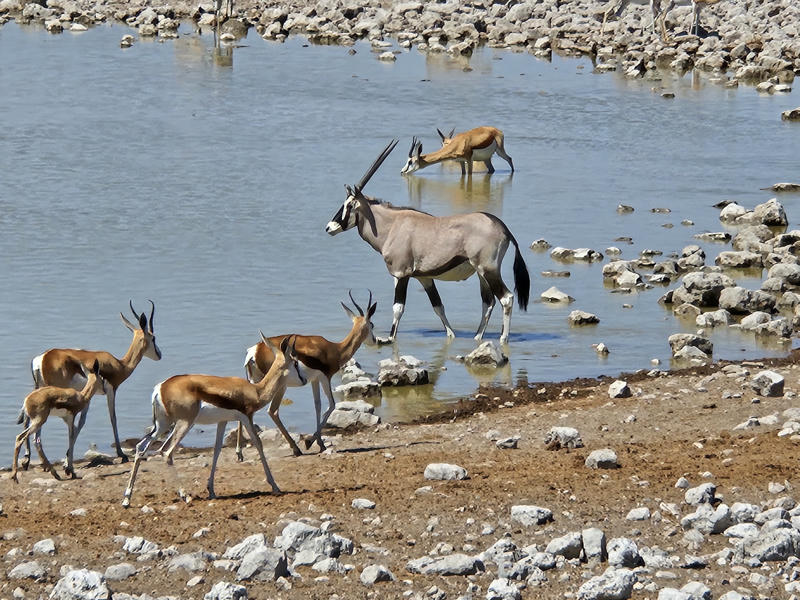 Unsere Route begann in Windhoek, der Hauptstadt Namibias. Von dort aus fuhren wir nach Süden, Richtung Rehoboth, ins Lake Oanob Resort. Danach ging’s weiter in den Namib-Naukluft-Park und in die berühmte Namib-Wüste. Auf dem Weg zur Küste machten wir einen kleinen Abstecher ins Bushman Desert Camp, bevor wir unsere Reise in Swakopmund fortsetzten. Von dort ging es nach Cape Cross zu einer Kolonie von Seehunden und nach Twyfelfontein. Ein Höhepunkt der Reise war der Besuch des Etosha-Nationalparks! Von dort aus ging unsere Reise weiter Richtung Norden zum Caprivi Zipfel, wo wir Zwischenstopps in Rundu und im Ngepi Camp am Okavango machten. Zum Schluss ging’s noch zum Waterberg und Mount Etjo, bevor wir zurück nach Windhoek fuhren.