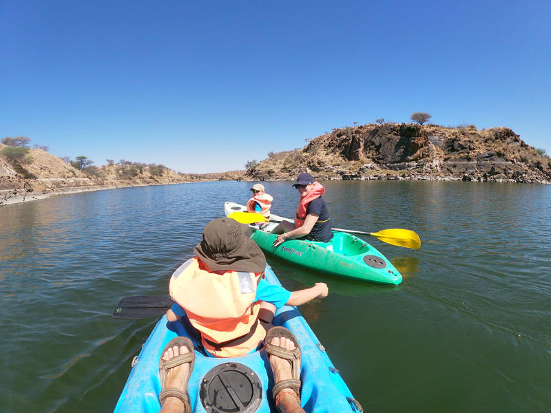 Schon unser erster Stopp am Lake Oanob bzw. im Lake Oanob Resort war ein kleines Highlight. Wir hatten einen großen Platz mit Kochstelle, Bad und einem großen schattigen Bereich mit Blick auf den Staudamm. Am Staudamm selbst konnte man einiges unternehmen: Wir waren paddeln und sind auf dem Zebra Trail spazieren gegangen. Des Weiteren gab es einen Pool zum Toben, was für uns beim Reisen mit Kids wichtig war. Als erster Stopp auf dem Weg von Windhoek nach Süden war der Platz für uns ideal.