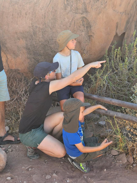 Wir reisten im Oktober und November, also während der heißen, trockenen Saison. Die Temperaturen waren oft so hoch, dass wir die Mittagszeit lieber im Schatten verbrachten. Um uns der Hitze zu entziehen, unternahmen wir die anstrengenderen Aktivitäten, wie Wanderungen, am frühen Morgen oder späten Nachmittag. Die langen Autofahrten zwischen den einzelnen Etappen überbrückten wir mit Hörspielen und Musik, was für die Kinder die perfekte Unterhaltung war. An den Campsites freuten wir uns jedes Mal auf eine Erfrischung im Pool. Gerade für die Kids war das ein Highlight, um sich nach den heißen Tagen abzukühlen und sich nach langem Sitzen im Auto richtig auszutoben.