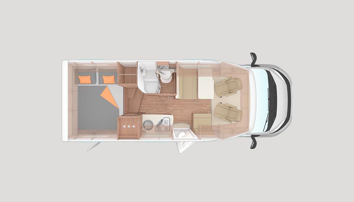 Der Duo Plus ist ein geräumiges Wohnmobil für 2 Reisende