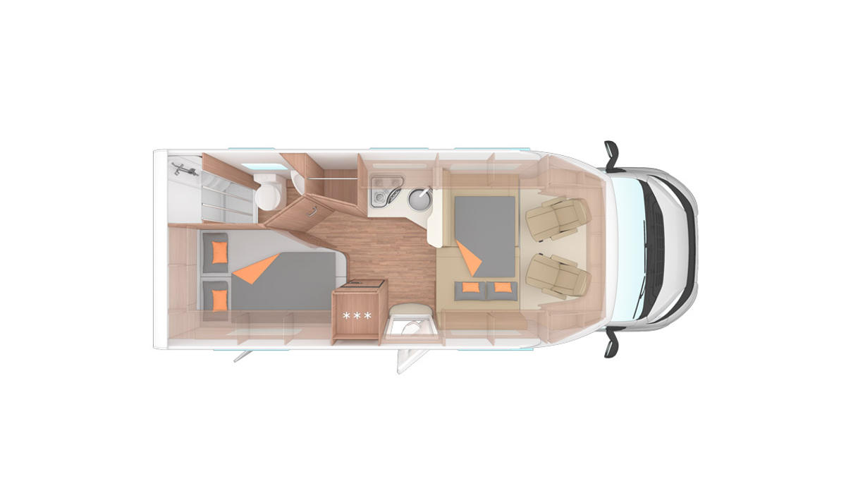 Der Family Traveller Plus bietet mehr Komfort für alle Reisende durch die innovative Raumaufteilung im Inneren des Wohnmobils