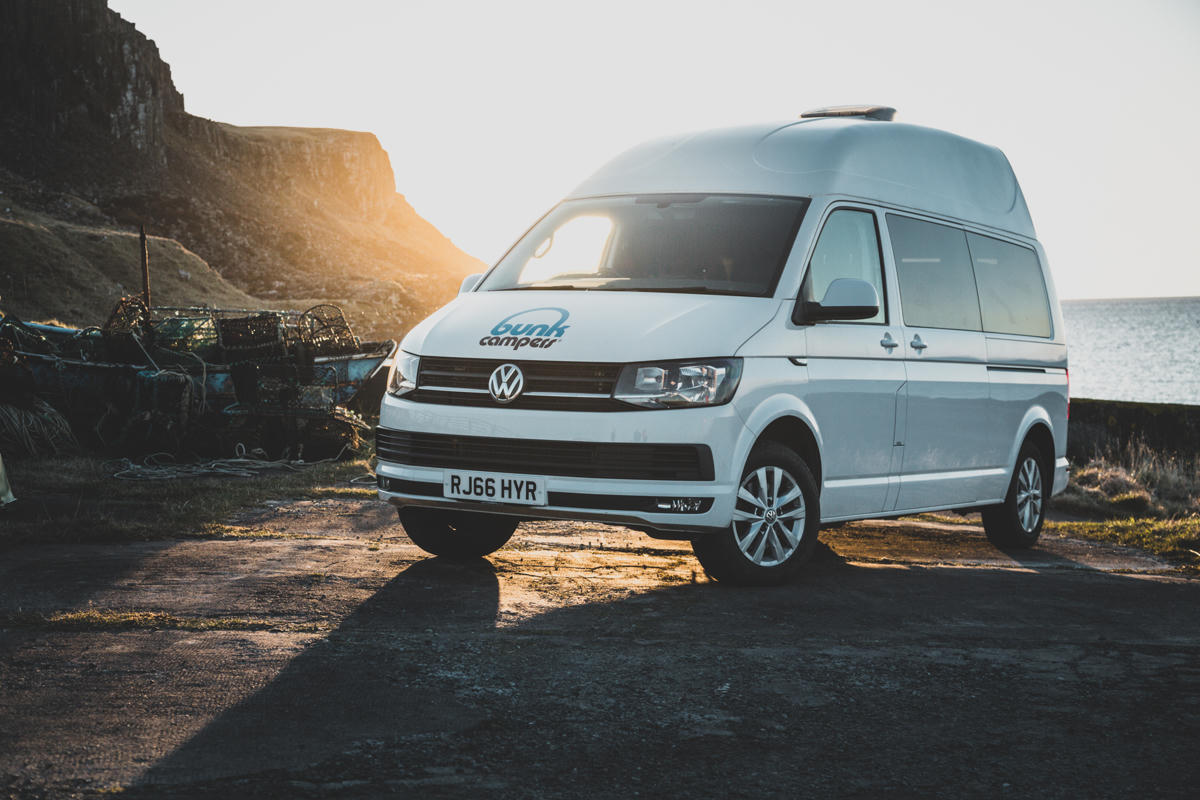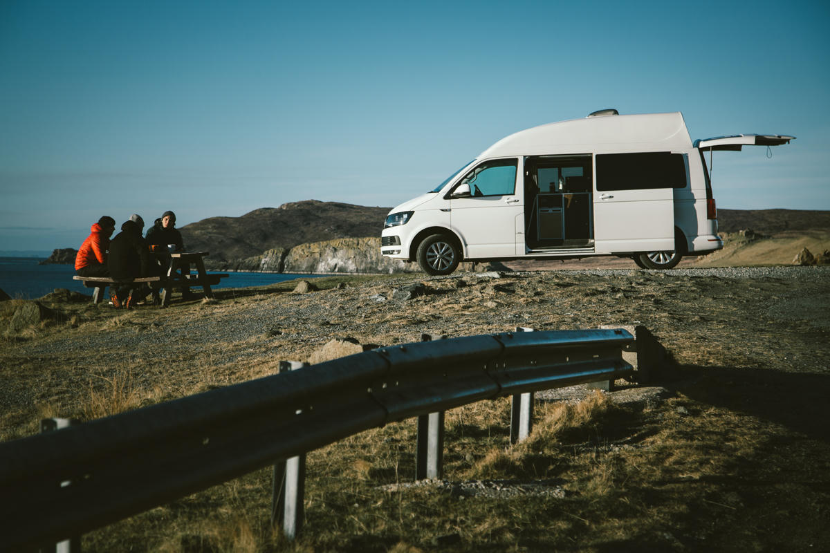 Der Ranger ist ein kompakter VW Bus für bis zu 4 Reisende. Das Modell ist ein VW T6 Transporter LWB, welches max. 3 Jahre alt ist. Ausgestattet ist der Ranger mit einem 2.0L Dieselmotor und einer 5 Gängeschaltung. Dank seiner Kompaktheit (5,3m Länge, 1,9m Breite) können auch engere Straßen in ländlichen Gegenden Irlands oder Schottlands problemlos passiert werden. Für die Unterhaltung während der Fahrt stehen ein Radio, ein Bluetooth- sowie ein AUX Anschluss zur Verfügung. Durch das Hochdach wirkt der Camper geräumiger und auch größere Leute können aufrecht im Camper stehen. Das erste Doppelbett mit den Maßen 1,83m x 1,26m befindet sich im Heck, während das längere Bett (2,00m x 1,26m) im Hochdach untergebracht ist. Damit das Reisen auch in der kälteren Jahreszeit angenehm ist, ist eine Dieselstandheizung im Camper verbaut.