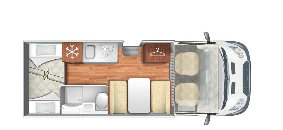 Das Adventure 6-Bett Wohnmobil ist ein praktisches Zuhause auf Rädern für Familien und Freundesgruppen. Besonders das Doppelstockbett im hinteren Teil des Fahrzeugs ist außergewöhnlich und macht das Fahrzeug sehr interessant. Über der Fahrerkabine befindet sich ein Doppelbett (1.60m x 2.09m) in den Alkoven. Die Dinette kann durch eine Verlängerung für bis zu 6 Personen ausgezogen werden. Zudem kann die Sitzgelegenheit ebenfalls zum Bett ( 1.30m x 1.86m) transformiert werden. Schräg gegenüber der Dinette befindet sich die Küchenzeile mit einem 3-flammigen Gasherd, einem 100L Kühlschrank, einem kleinen Ofen und einer Spüle. gegenüber findet ihr das Bad mit Dusche, WC und Waschbecken. Ganz am Ende des Fahrzeugs wurde ein Doppelstockbett (je 1.28m x 2.15m) eingebaut. Die Elektronik wird durch ein 120 Watt Solar Panel auf dem Dach unterstützt. ZUdem hat das Fahrzeug ein grozügiges externes Staufach (1,37m x 1,15m x 2,80m) Ihr könnt euch zudem über ein Automatikgetriebe, Standheizung, TV, USB Steckdosen und eine Rückfahrkamera freuen. Die Fahrzeuge von Just Go UK werden an Mieter mit einem Alter von mindestens 25 Jahren vermietet. Das Fahrzeug benötigt Adblue.