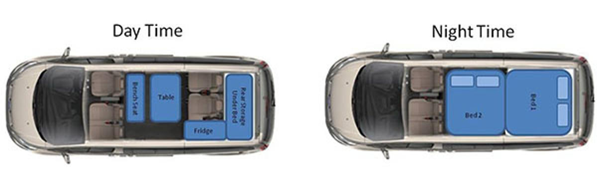 Die Vielseitigkeit des Campers ermöglicht fast alles, was für einen erfolgreichen Roadtrip benötigt wird. Die Küchenausstattung liefert einen 2-flammigen Gasherd, mit dem ihr unterwegs echte Mahlzeiten zubereiten können. zudem befindet sich im Innenraum auch ein Tisch und Sitzgelegenheiten zum gemeinsamen Essen. Die Aufbewahrung unter dem Bett bietet euch zusätzlichen Platz, ohne dass eure Lebensmittel oder Ausrüstung im Weg sind. Nachts haben alle vier Reisenden eine Matratze zum Schlafen. Das Queen Size Bett (1.70m x 1.95m) befindet sich im hinteren Bereich während das Doppelbett (1.40m x 1.75m) im mittlerem Bereich aufgebaut wird. Auch für Familien ist der Camper durchaus interessant. Ein Kindersitz (ISOFIX) kann angebracht werden.
