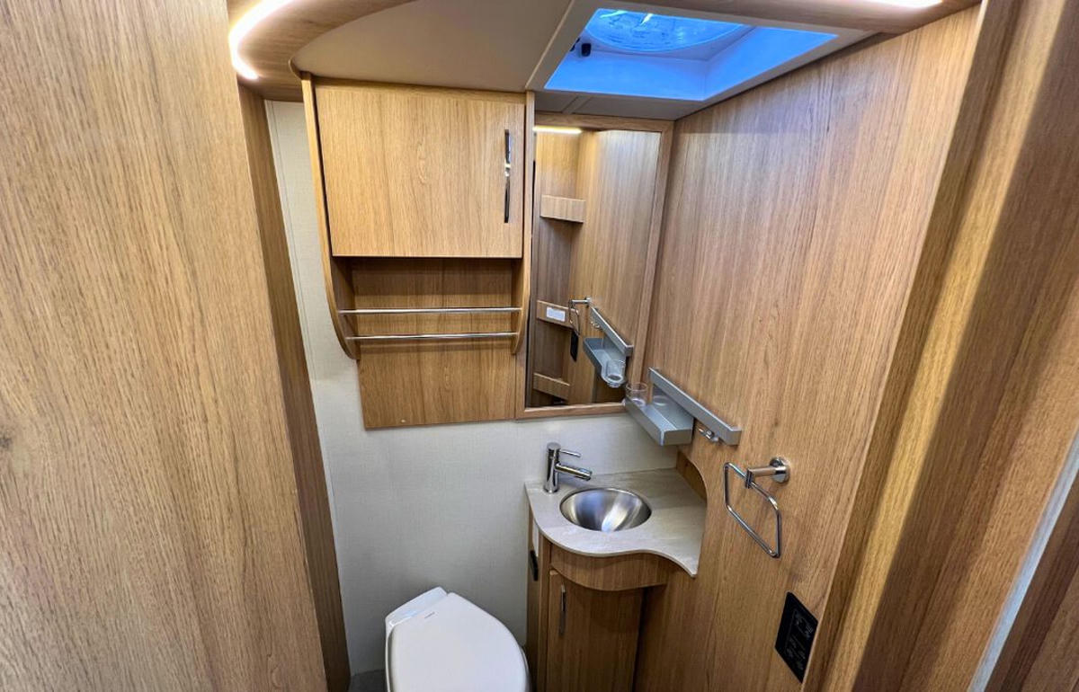 Im Schlafbereich befinden sich hinten zwei Einzelbetten (je 1,93m x 0,86m), die sich einfach zu einem großen King-Size-Bett (2,24m x 1,93m) zusammenfügen lassen. Zusätzlich kann die Dinette zu einem Einzelbett (2,24m x 1,14m) umgebaut werden.