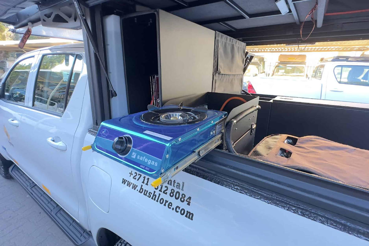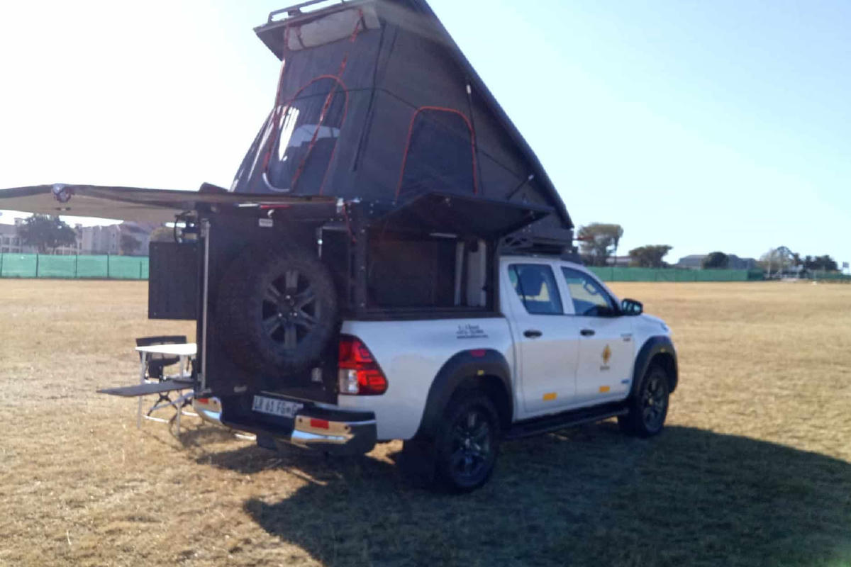 In nur 60 Sekunden ist das komplette Camp-Setup startklar und genauso schnell wieder verstaut. Das Dachzelt ist mit wenigen Handgriffen aufgebaut und bietet ein Doppelbett für 2 Personen (2,10m x 1,30m). Der Camper bietet ein optimiertes und einfach zugängliches Stauraumkonzept, interne Beleuchtung und eine komfortable Matratze für eine erholsame Nachtruhe. Die Edelstahlkonstruktion garantiert Haltbarkeit und macht den Camper zum zuverlässigen Partner für jedes Abenteuer in Südafrika.