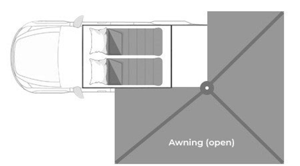 Breite: 1,30m Länge: 2,10m | Position: im Dachzelt |