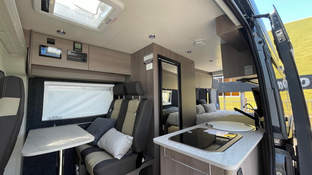 Der Nevis basiert auf dem Fiat Ducato (Modelljahre 2021–2025) und kombiniert Fahrkomfort mit großzügigem Innenraum. Besonders angenehm: Wohn- und Schlafbereich sind klar voneinander getrennt, sodass sich der Camper tagsüber wie ein gemütliches Wohnzimmer und abends wie ein Rückzugsort anfühlt.