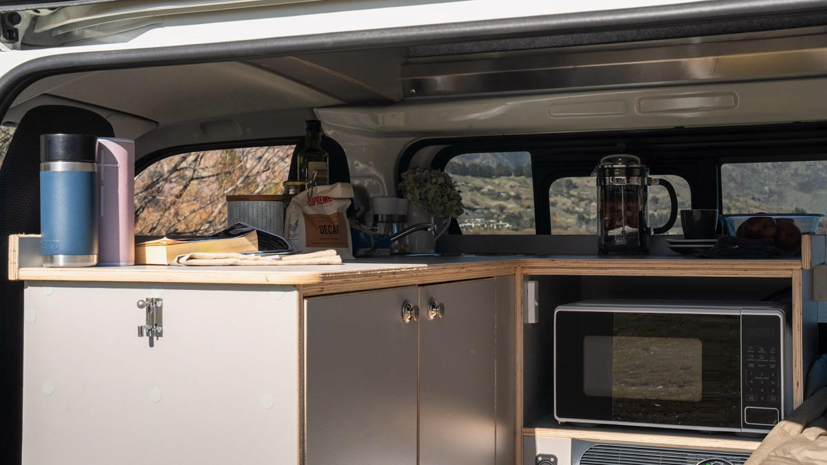 Der Camper ist vollständig self-contained und enthält alles Nötige für den Alltag unterwegs: