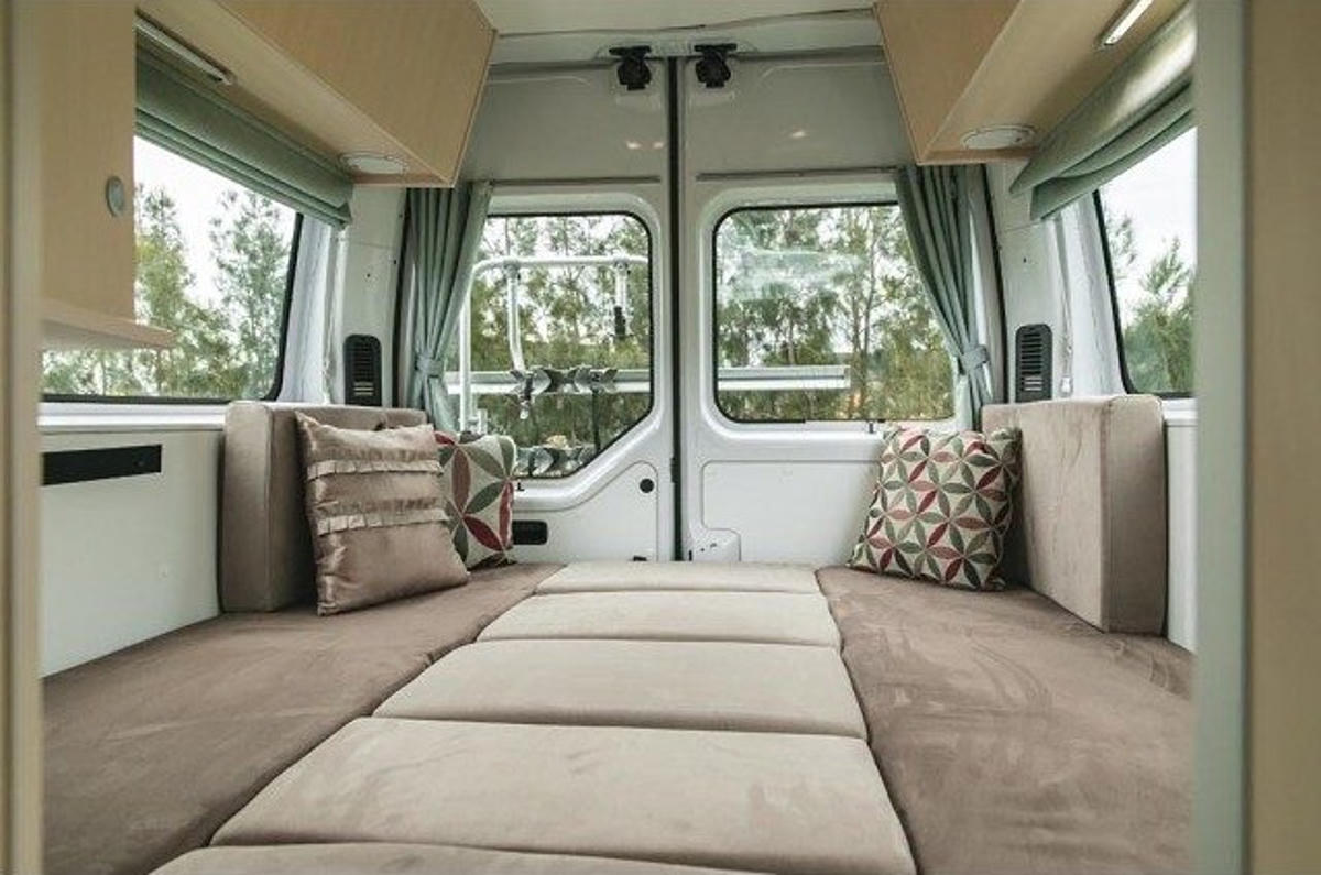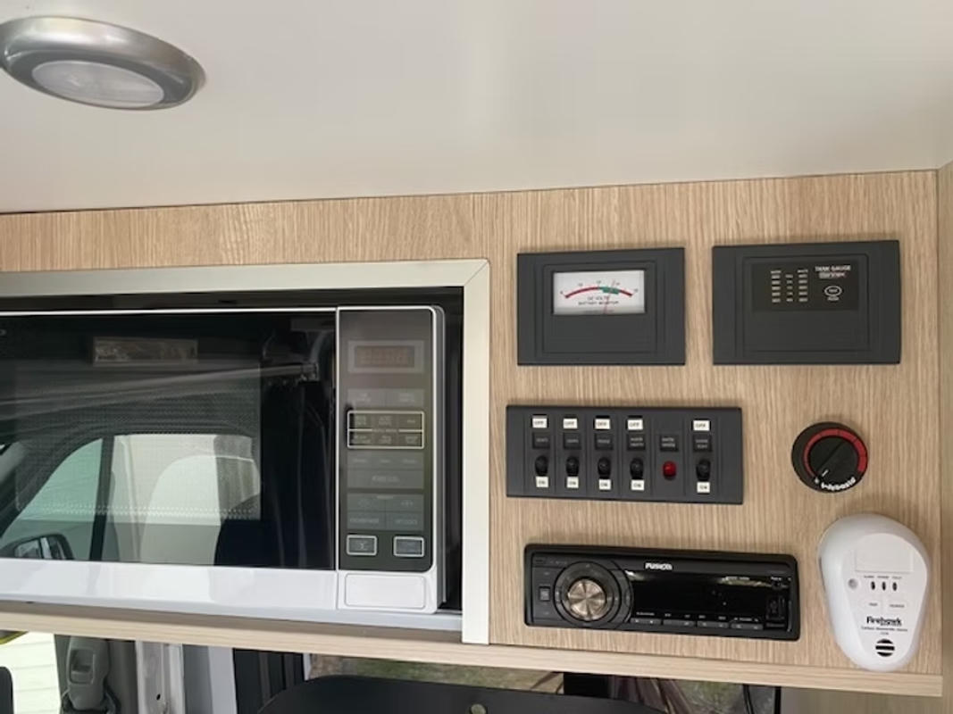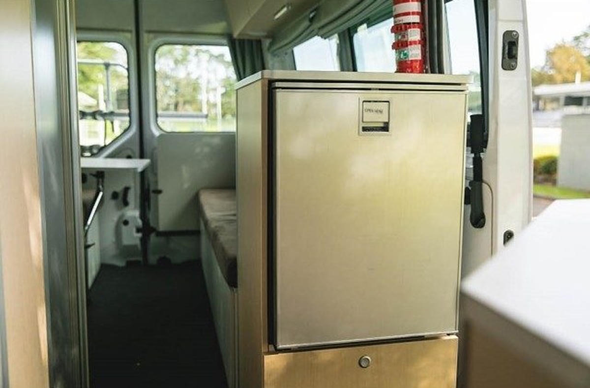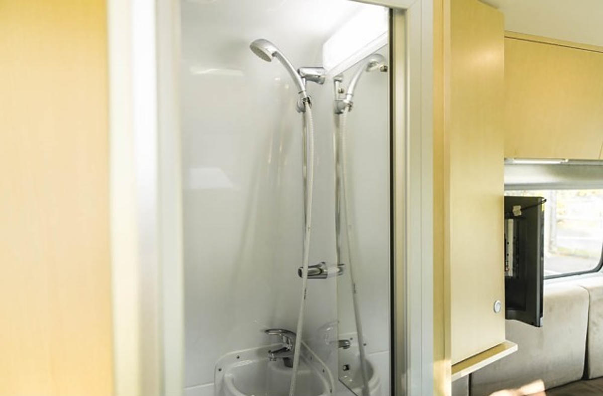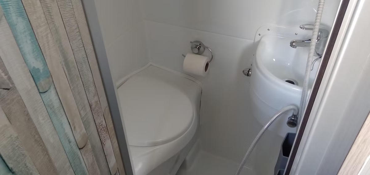 Der Camper ist Self-Contained zertifiziert und verfügt über einen 76-Liter-Frischwassertank, einen gleich großen Abwassertank sowie eine Toilette und Dusche, sodass du auch abseits der typischen Campingplätze vollkommen unabhängig unterwegs bist.