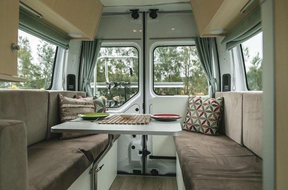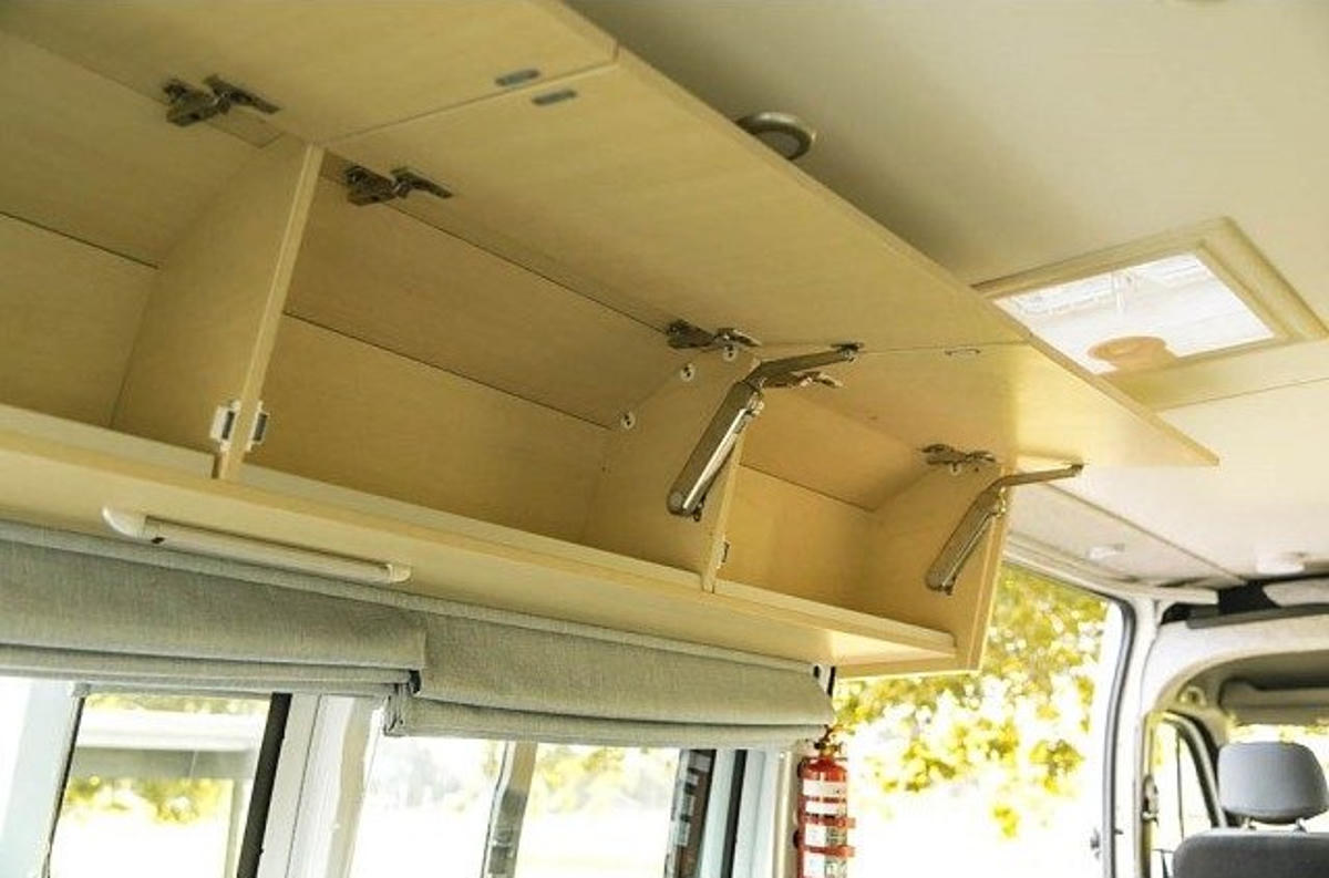 Im Inneren erwartet dich ein durchdacht gestalteter Wohnraum mit einer Stehhöhe von 1,88 Metern. Für die Nacht wird aus den Sitzbänken im Heck ein Doppelbett mit den Maßen 2,00 x 1,80 Meter. Zahlreiche Staufächer unter den Sitzbänken und in den Hängeschränken bieten ausreichend Platz für Gepäck und Vorräte. Besonders praktisch ist der eingebaute Safe, in dem du deine Wertsachen sicher aufbewahren kannst.
