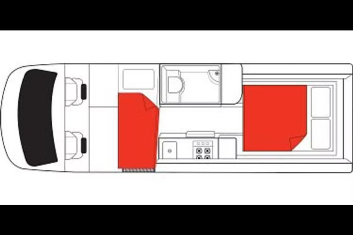 Der Nomad 2+1 Berth von Bayinvent Rental ist ein self-contained Campervan für Paare oder zwei Erwachsene mit Kind, ausgestattet mit Dusche und Toilette. Mit viel Stauraum und cleverer Raumaufteilung ist er ideal für alle, die Neuseeland flexibel und unabhängig entdecken möchten.