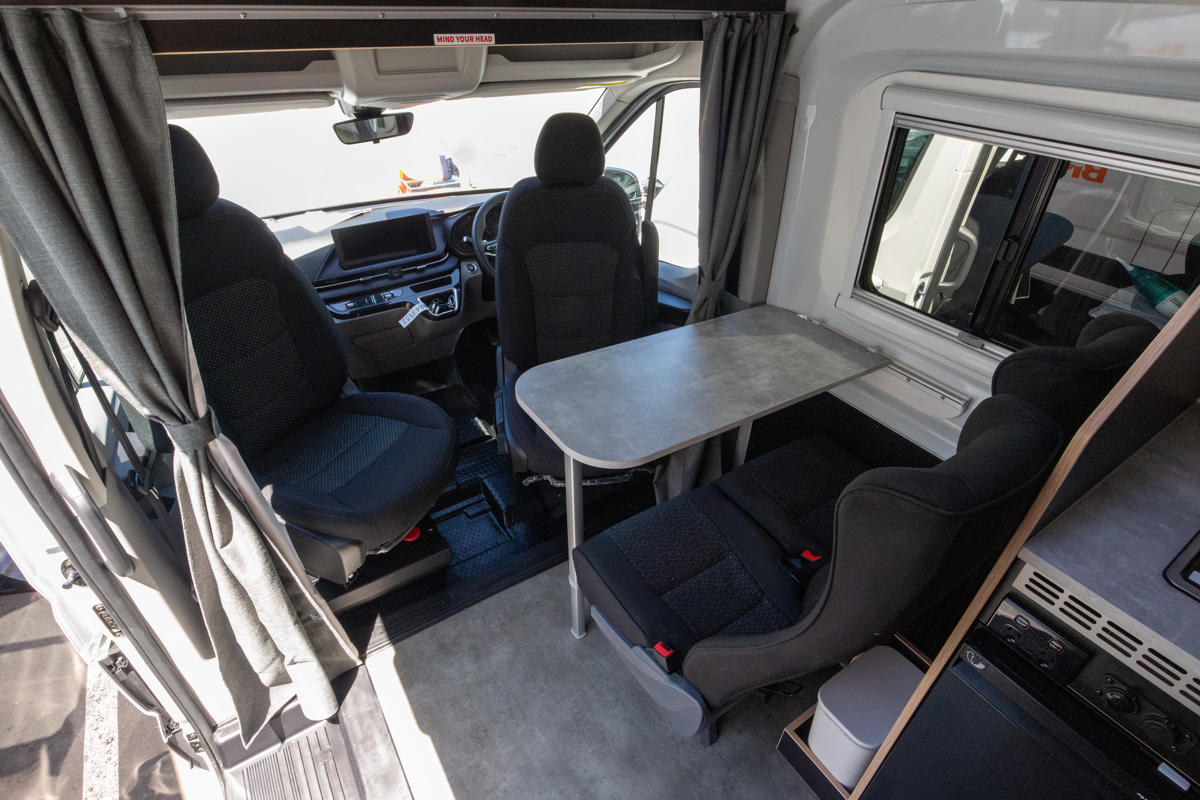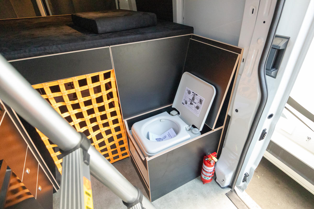 Dank der eingebauten 12 L self-contained Toilette sowie jeweils 50 L Frisch- und Abwassertanks seid ihr auch abseits klassischer Campingplätze bestens versorgt. Zwei Kindersitze oder Babyschalen können ebenfalls sicher befestigt werden.