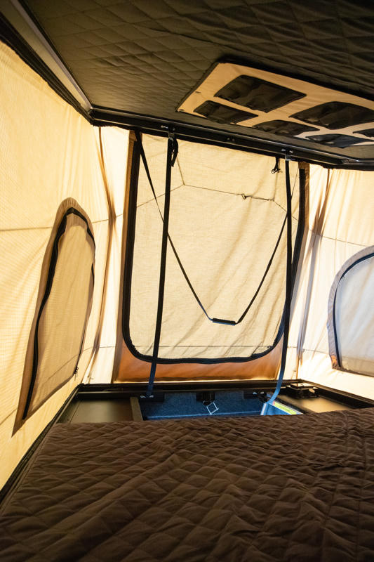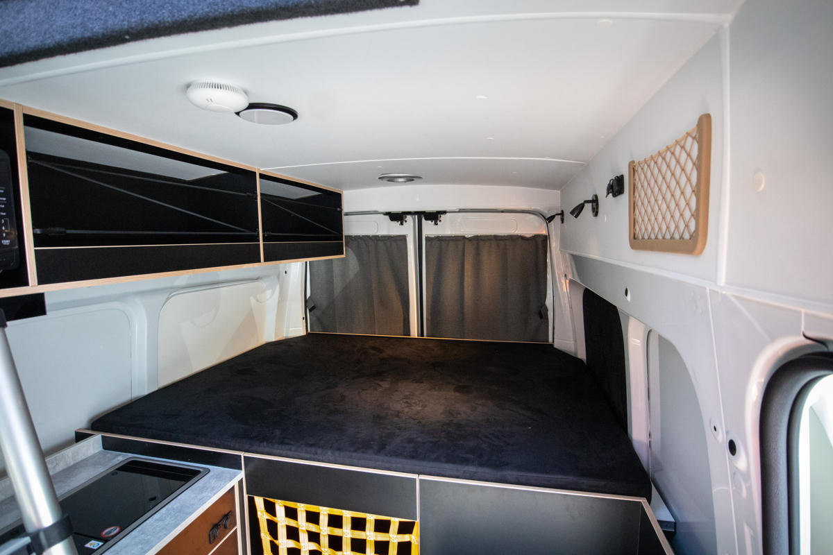 Zum schlafen ist das Fahrzeug mit einem festes Doppelbett im Heck (1,85 x 1,40m) sowie einem praktischen Aufstelldach mit weiterem Doppelbett (1,90 x 1,40m) ausgestattet, das über eine Luke im Innenraum zugänglich ist – ideal für Paare, Familien oder Freunde.