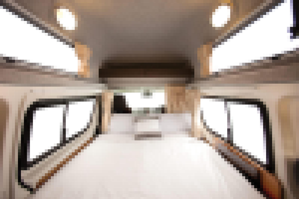 Der Schlafbereich besteht aus einem Doppelbett (1,80 m x 1,24 m), das sich aus der Sitzecke umbauen lässt, sowie einem zweiten Doppelbett (2,00 m x 1,20 m) oberhalb – ideal für Kinder. Damit eignet sich der DeLITE besonders für Familien mit Kindern, die einen kompakten Camper mit genügend Schlafplätzen suchen.