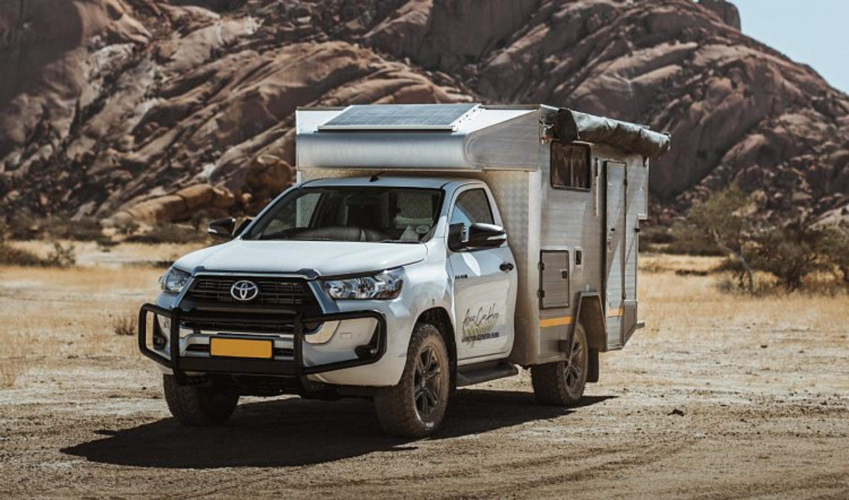 Der Group K - Toyota Hilux 2.4 (Auto) Bushcamper 4×4 ist ein gut ausgestatteter und hochwertiger Camper von Asco Car Hire. Das Fahrzeug verfügt über eine geschlossene Kabine mit hoch-fahrbarem Dach, wodurch eine angenehme Innenhöhe entsteht.