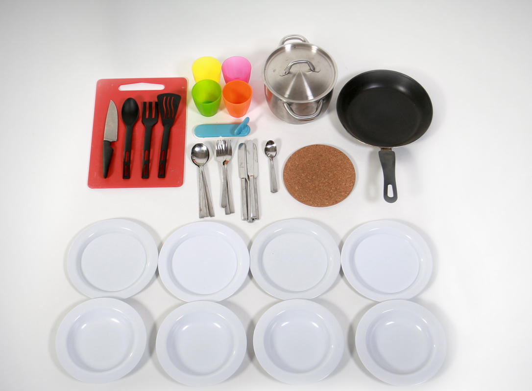 | Besteck, Geschirr, Töpfe, Pfanne(n): | ||