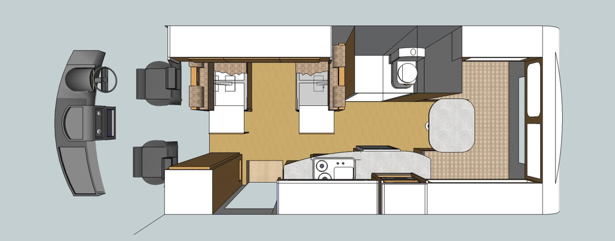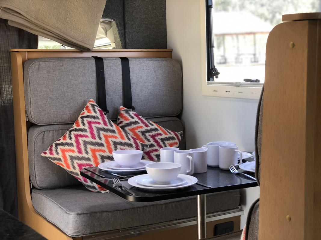 Der M4BI von Maui Motorhomes ist ein kompakter Iveco Camper für Familien und Gruppen mit bis zu 4 Personen auf Reisen in Südafrika und Namibia. Dabei verfügt der halbintegrierte Camper über einen 2.2l Dieselmotor, manuelle Schaltung und einen 80l Tank. Neben den zwei Sitzen der Fahrerkabine finden zwei weitere Personen während der Fahrt direkt dahinter Platz. Hier können bei Bedarf auch Kindersitze angebracht werden.
