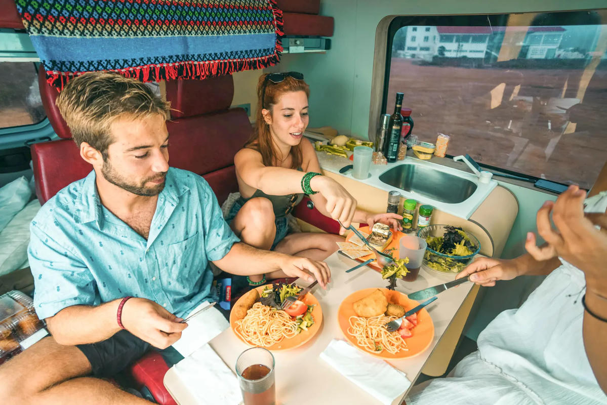 Der Sporty von Indie Campers ist ein sportlicher Fiat Ducato L1H2 Kastenwagen. Bis zu vier Personen können im Fahrzeug sitzen und schlafen. Dadurch ist das Fahrzeug besonders bei kleinen Gruppen und Familien beliebt. Der Camper hat eine Automatikgangschaltung und einen sparsamen Verbrauch von ca. 7l/100km. Die Sitze in der Fahrerkabine sind drehbar (nicht garantiert), dadurch kann der Innenraum effizienter genutzt werden und ihr könnt gemeinsam am mobilen Esstisch sitzen. Die Küchenzeile besteht aus einer Spüle mit einem 50L Frischwassertank und einer elektrischen Kühlbox. Zudem bekommt ihr noch einen ein-flammigen Gaskochen mit dazu.