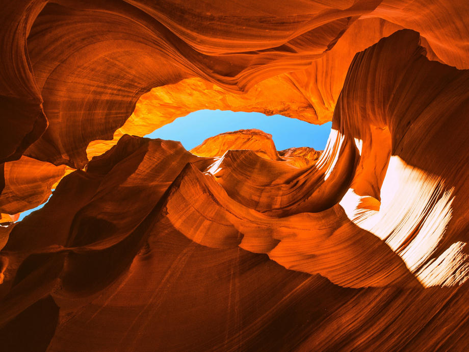 Der Antelope Canyon liegt auf dem Land der Navajo Nation , für die der Canyon ein heiliger Ort ist. Entstanden sind die schmalen Schluchten durch Erosion, vor allem durch Sturzfluten, die sich mit hoher Geschwindigkeit durch das Navajo Sandstein-Gestein gegraben haben. Der Canyon teilt sich in den Upper Canyon und den Lower Canyon. Beide Canyons bestehen aus dem ikonischen roten Navajo Sandstein, unterscheiden sich jedoch in ihrer Form. Beide haben geschwungene Felswände, im Upper Canyon sind die Wände jedoch höher und enger, wodurch das Gefühl entsteht, dass man sich in einer Art Tunnel befindet. Der Lower Canyon ist weitläufiger und eher spiralförmig. Seit einem Unfall 1997 sind sowohl Upper als auch Lower Canyon nur noch mit geführten Touren zugänglich. Die Touren dauern in der Regel 1-1,5 Stunden und sollten in jedem Falle im Voraus gebucht werden.