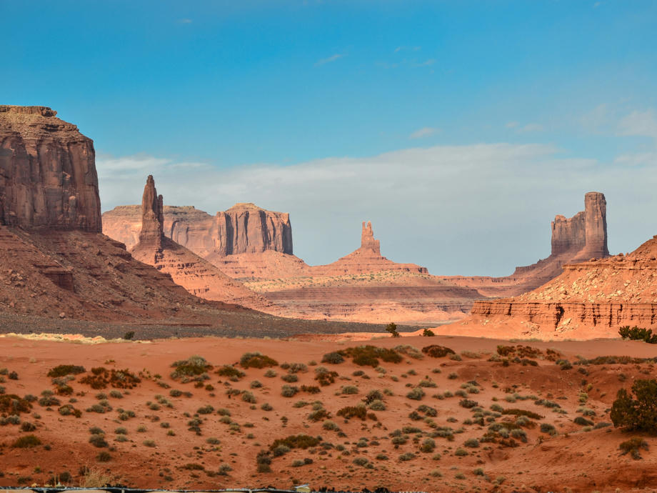 (auch Buttes genannt), die teilweise bis zu 300 Meter aus der Erde ragen und zum Anderen, weil diese ikonischen Gesteinsformationen in unzähligen Western-Filmen, Muskvideos oder Werbespots zu sehen waren. Daher ist es heute ein beliebter Zwischenstopp auf Roadtrips durch den Südwesten der USA. Die Gegend liegt im Navajo Nation Reservation-Gebiet und wird daher von den Navajo verwaltet. Besucher können über das Monument Valley Navajo Tribal Park Visitor Center Eintritt in das Gebiet gelangen.