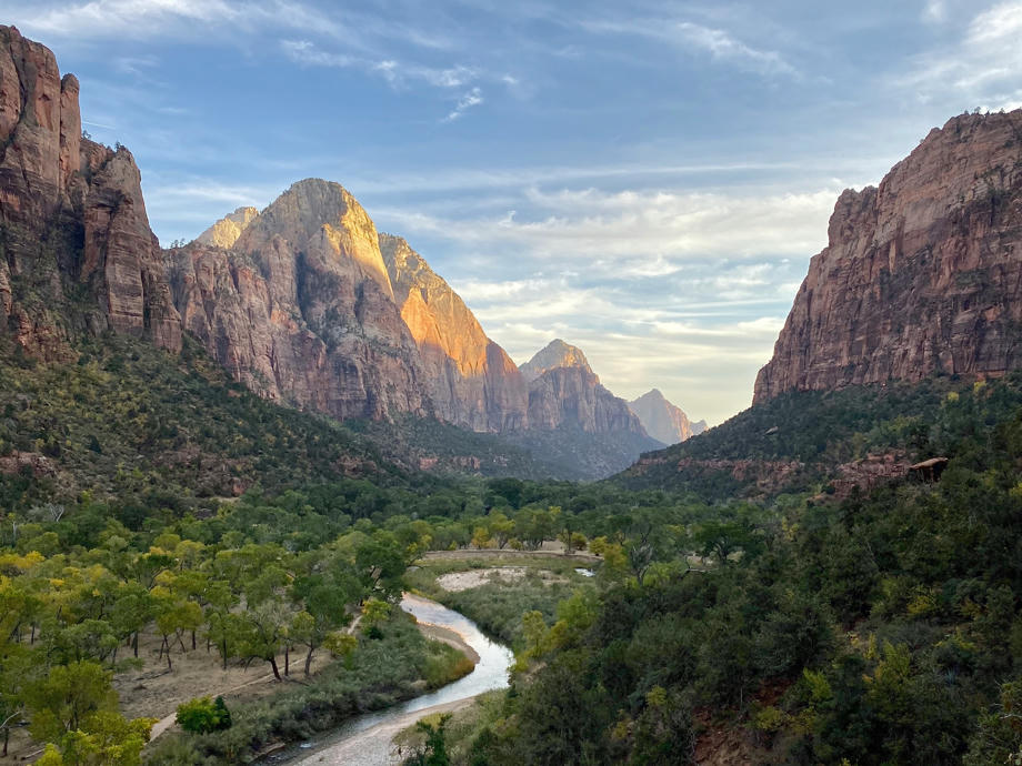 Angels Landing, die bekannteste Wanderung im Park erfordert seit 2022 einen Permit, den ihr online in einer Lotterie gewinnen könnt. Für die Wanderung an sich solltet ihr 3-5 Stunden einplanen und gutes Schuhwerk im Gepäck haben. 🥾 Der Aufstieg ist anspruchsvoll und an einigen Stellen sehr schmal, sodass ihr gegebenenfalls andere Wander*innen auch mal den Vorrang lassen müsst, bis wieder genug Platz auf dem Weg ist. Sollte euch die Wanderung zu anspruchsvoll erscheinen oder ihr keinen Permit in der Lotterie ergattern können, hat der Park einige Alternativen für euch im Petto. Der sogenannte „The Narrows“ Wanderweg führt euch im Virgin River durch einen engen Slot Canyon. Die Wanderung ist besonders im Sommer beliebt, da ihr durch Wasser lauft und euch somit abkühlen könnt. Besonders wichtig ist es hier, rutschfeste Schuhe anzuziehen, die auch nass werden können. Eine weitere leichtere Wanderung führt euch zu Wasserfällen und den Lower, Middle und/oder Upper Emerald Pools. Je nach Laune könnt ihr die Wanderung als Alternative zu Angels Landing machen oder an einem zweiten Tag im Park, um verschiedene Spots des Nationalparks zu erkunden